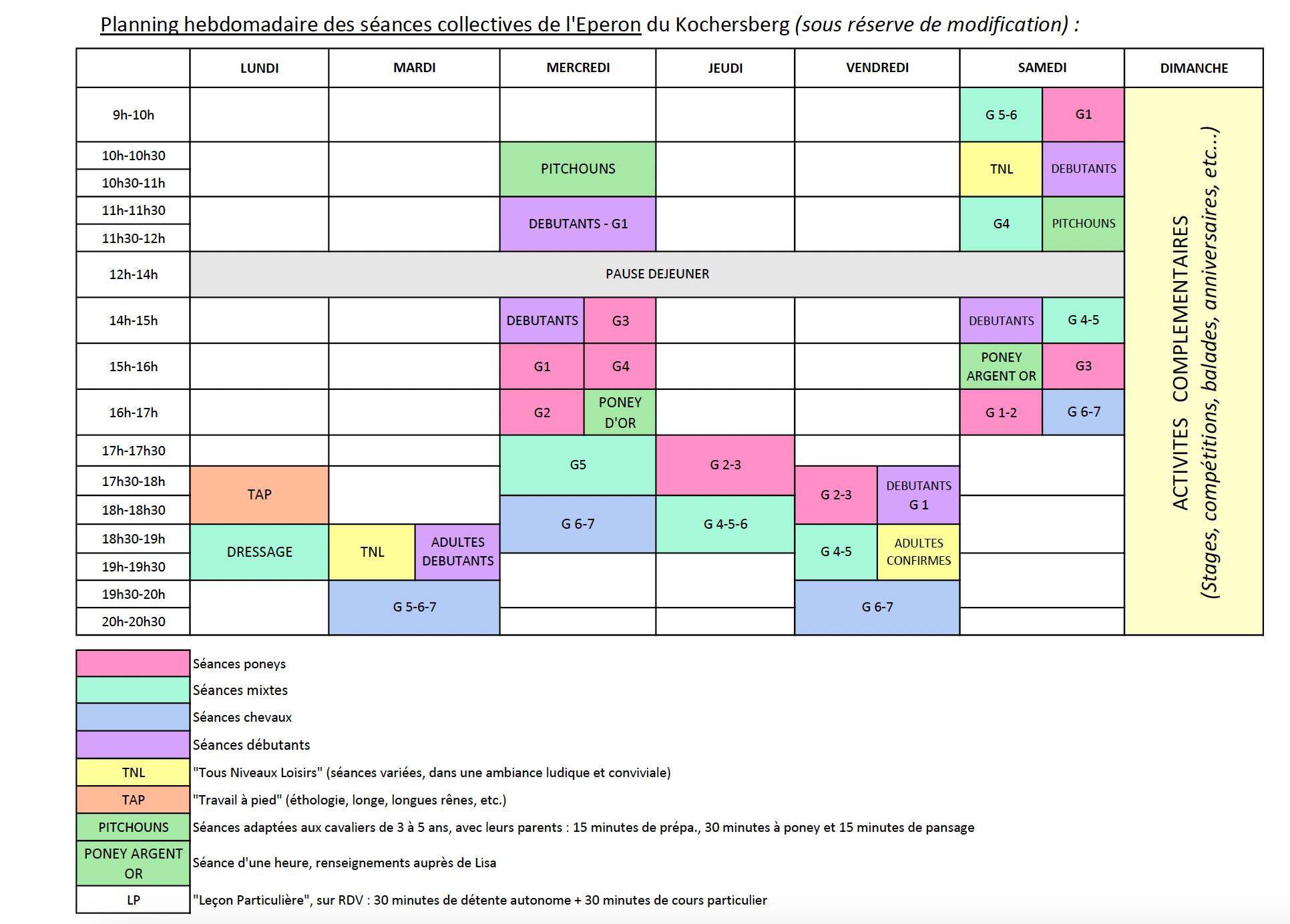 *Pitchouns : Séances adaptées aux enfants de 3 à 5 ans, durée de la séance 1h (dont environ 15 min de préparation, 30 min à poney et 15 min de soins). Parents indispensables.