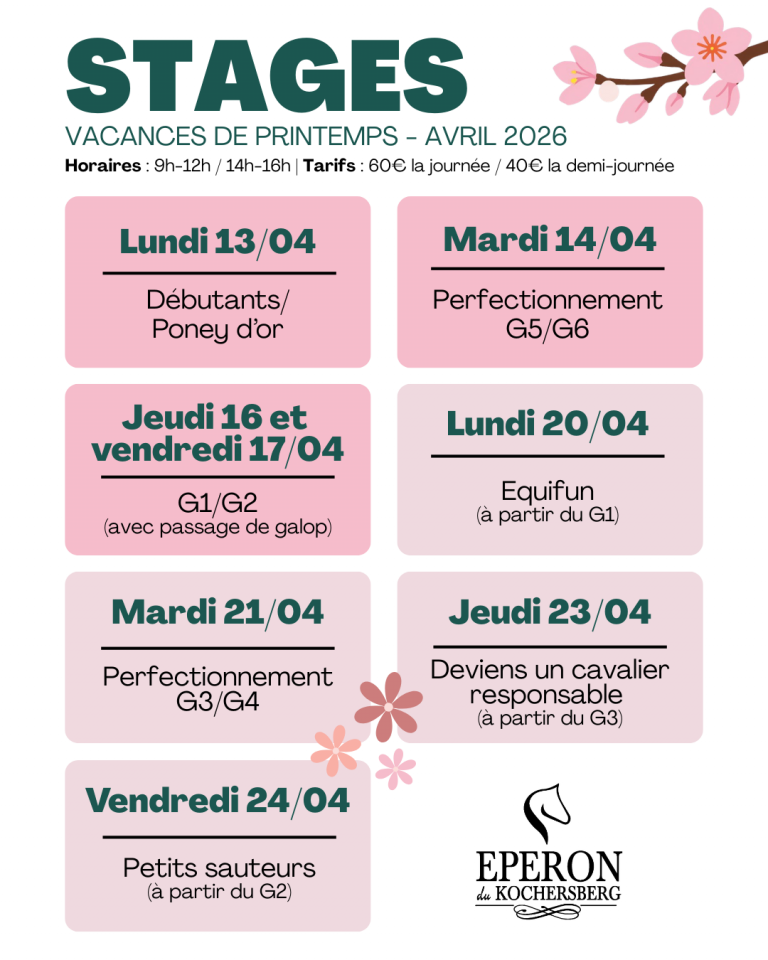 L’Eperon du Kochersberg propose également des séjours de découverte de l’équitation pour les écoles. Pour plus de renseignements, merci de nous contacter.